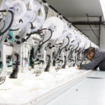 と考えたようです。誰でも買える手ごろな価格にするには材料から考えねばなりません。それまでのように絹糸を使ったのではコスト引き下げには限界があります。