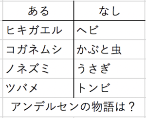 懸命に描いたに違いないイラストは支持されませんでした。私は面白いと思ったのですが。1班は意外性のある問題を作って驚かれたようです。アンデルセンの童話と描いてあるとはいえ、生き物を並べただけのこれだけのヒントで、あなたは答を出すことが出来ますか?